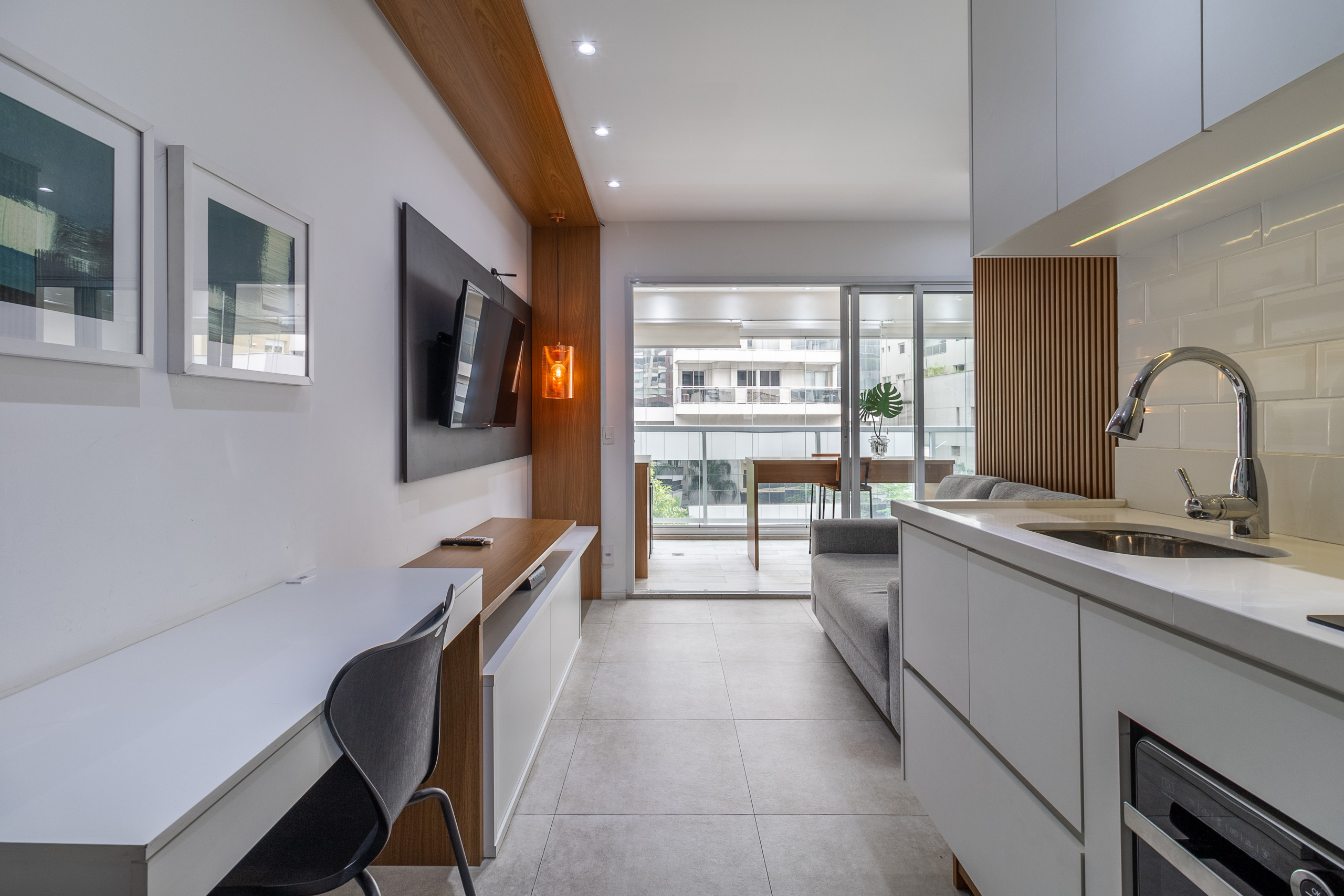 Nosso estúdio é super novo, totalmente equipado e decorado por profissionais renomados, aconchegante e com varanda fechada.