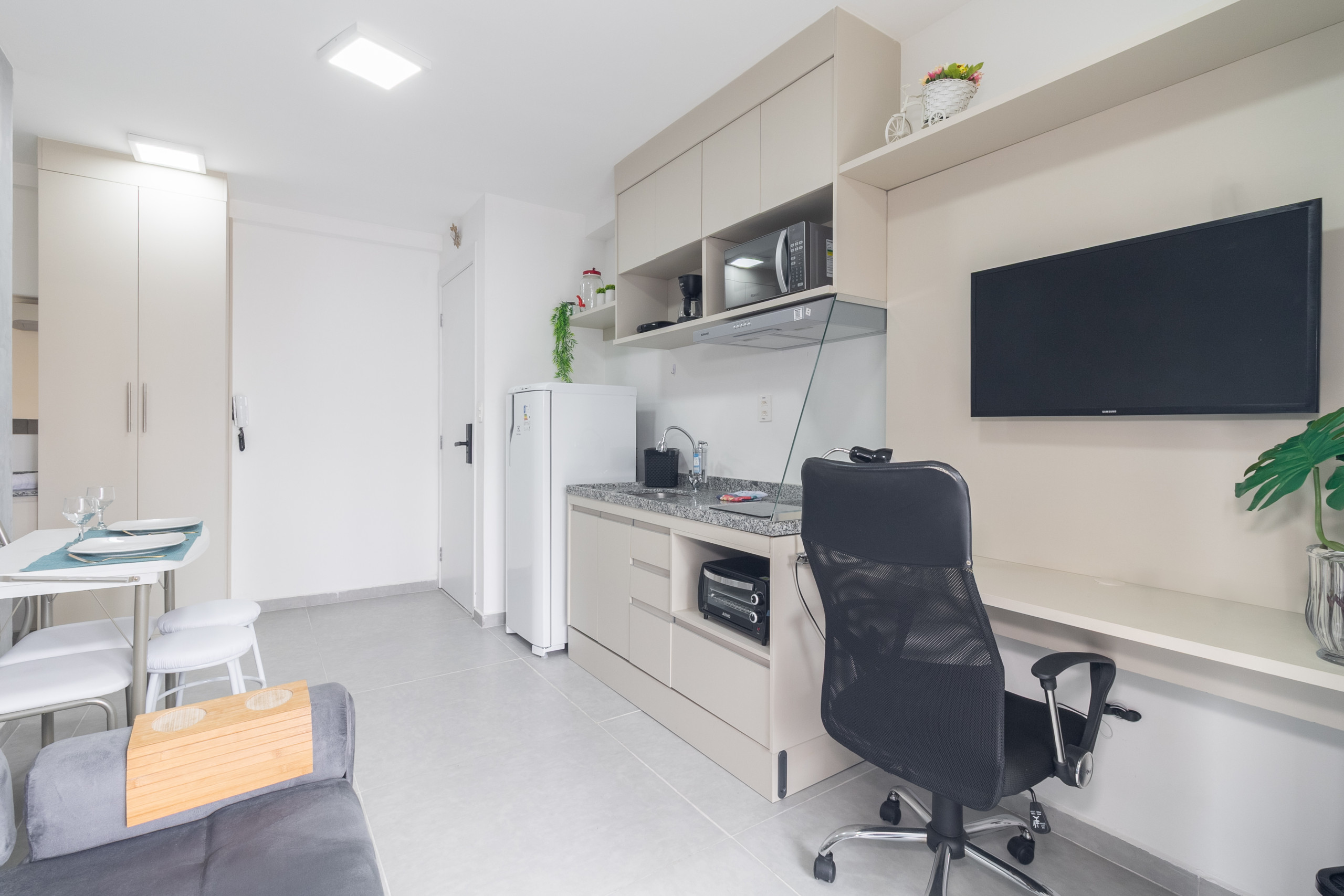 The apartment in São Paulo has 1 bedrooms and has capacity for 3 people (max. 2 adults).